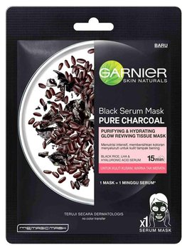 Garnier Black Serum Mask Pure Charcoal Black Algae untuk membersihkan kulit berminyak secara menyeluruh dan mendalam, serta mengangkat komedo dan menghaluskan pori-pori.